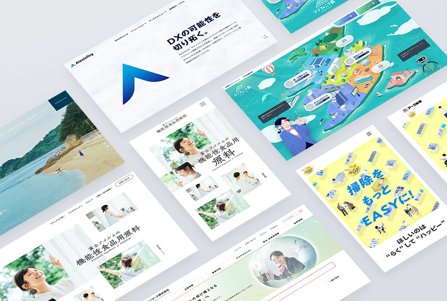 - 製品・サービスサイトデザインやコピーライティングで商材の魅力を伝えるとともに、コンバージョンに結びつく導線を設計。成果につながるサイトを制作します。