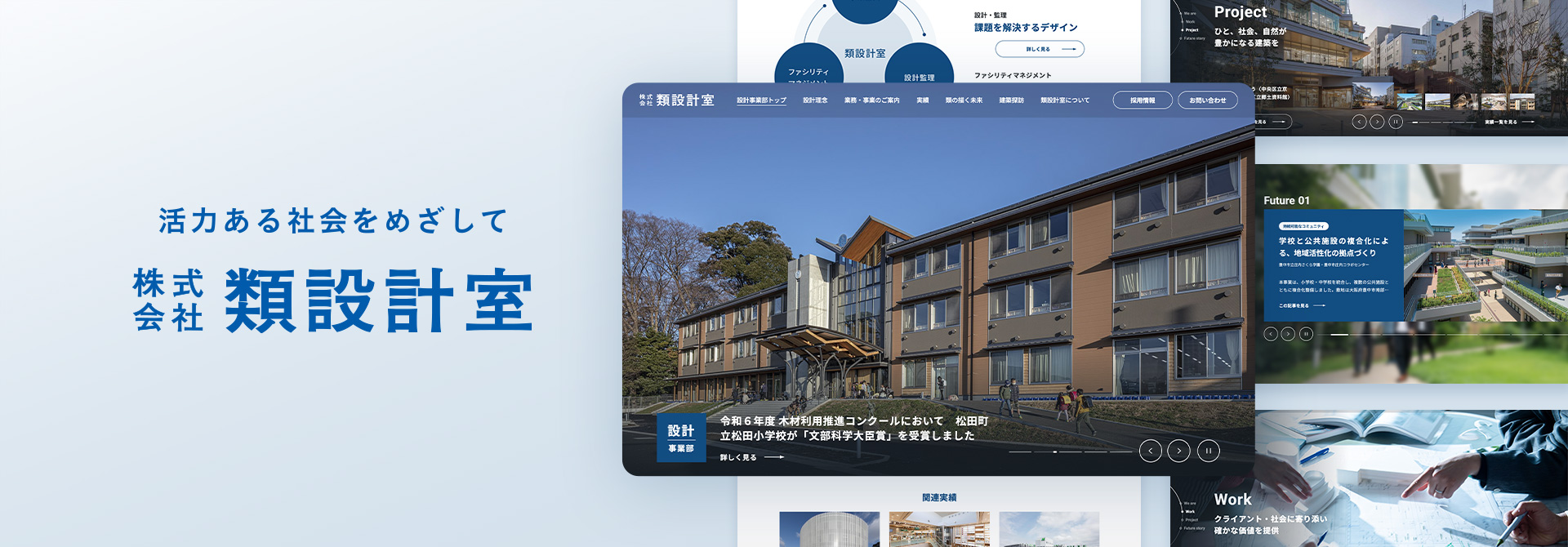 「社会の活力を生み出す」という視点のもと、設計・教育・農園などさまざまな事業領域で社会課題の解決に取り組んでいる、株式会社類設計室。ビーワークスは広報戦略のパートナーとして、設計事業部の戦略検討からコーポレートサイトのリニューアル、その後の運用支援までをトータルにサポートしている。採用面での成果や運用フローの確立につながったというリニューアルプロジェクトは、どのように行われたのか。その進め方や「同じ熱量で意見を交わした」という2社の関係性について、類設計室の部門を横断した広報チームである金成様、松本様、伊藤様と、ビーワークスのプロジェクトチームとで座談会を実施した。