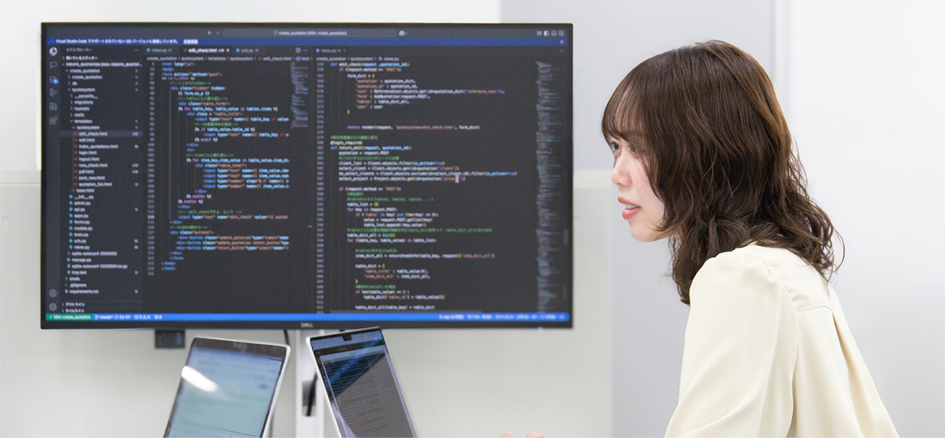 現在は、主に出版系のシステム開発に携わっています。業務範囲はクライアントとの仕様検討・要件定義といった上流工程から、実際の開発、リリース後の運用・改善対応まで幅広く担当しています。単に動作するシステムを作るだけでなく、より効率的に処理を行うための工夫や、将来的な機能拡張を見据えた柔軟な設計を意識して取り組んでいます。開発を行う上で技術力は重要ですが、それだけではなくクライアントとのコミュニケーションや、チーム内で誰が見ても意味が伝わるコードを書くこと、構造が理解しやすいシステムを設計することなど、言語的な表現力や伝達力も大切な要素だと感じています。求められるスキルは多いですが、その分だけ学びもあり、自分の成長を実感できる環境です。技術とコミュニケーションの両面から価値を提供できるよう、日々取り組んでいます。