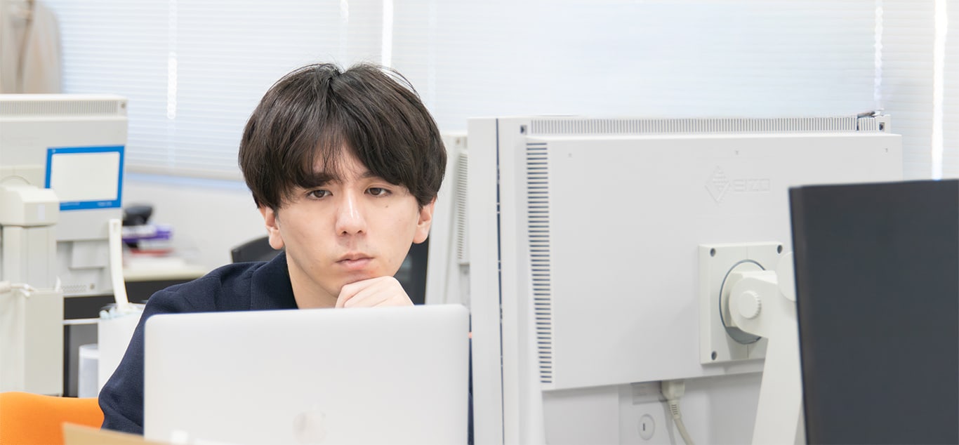最初はWebについての知識もあまりなかったため、分からないことばかりでした。仕事のできる同期や先輩と自分を比べて「自分の強みって何だろう?」と悩むことも多かったです。そんな時に、当時の上司から「北山くんはなんでもまずやってみようと手をあげるのが良いところだよね」と言われ、「これだ!」と思い、できるだけ多くの案件に関わることを意識してWebだけでなく動画やPDF冊子など幅広い制作物に参加するようにしました。未経験の分野に飛び込む怖さがなかったといえば嘘になりますが、上司やメンバーが常にアシストしてくれたおかげでさまざまな経験を積むことができました。経験を重ねていく中で、「つくったサイトをユーザーにもっと見てもらいたい!」と思うようになり、アクセス分析に挑戦してみようという気持ちが芽生えました。ちょうど社内でSEOの勉強会があったので、それを通してweb解析士の資格を取得しました。実際の案件でアクセス解析をしてみると、数字から読み取れる発見が多く、視野が広がっただけでなく、数字という確かな裏付けで提案にも説得力を持たせることができるようになりました。