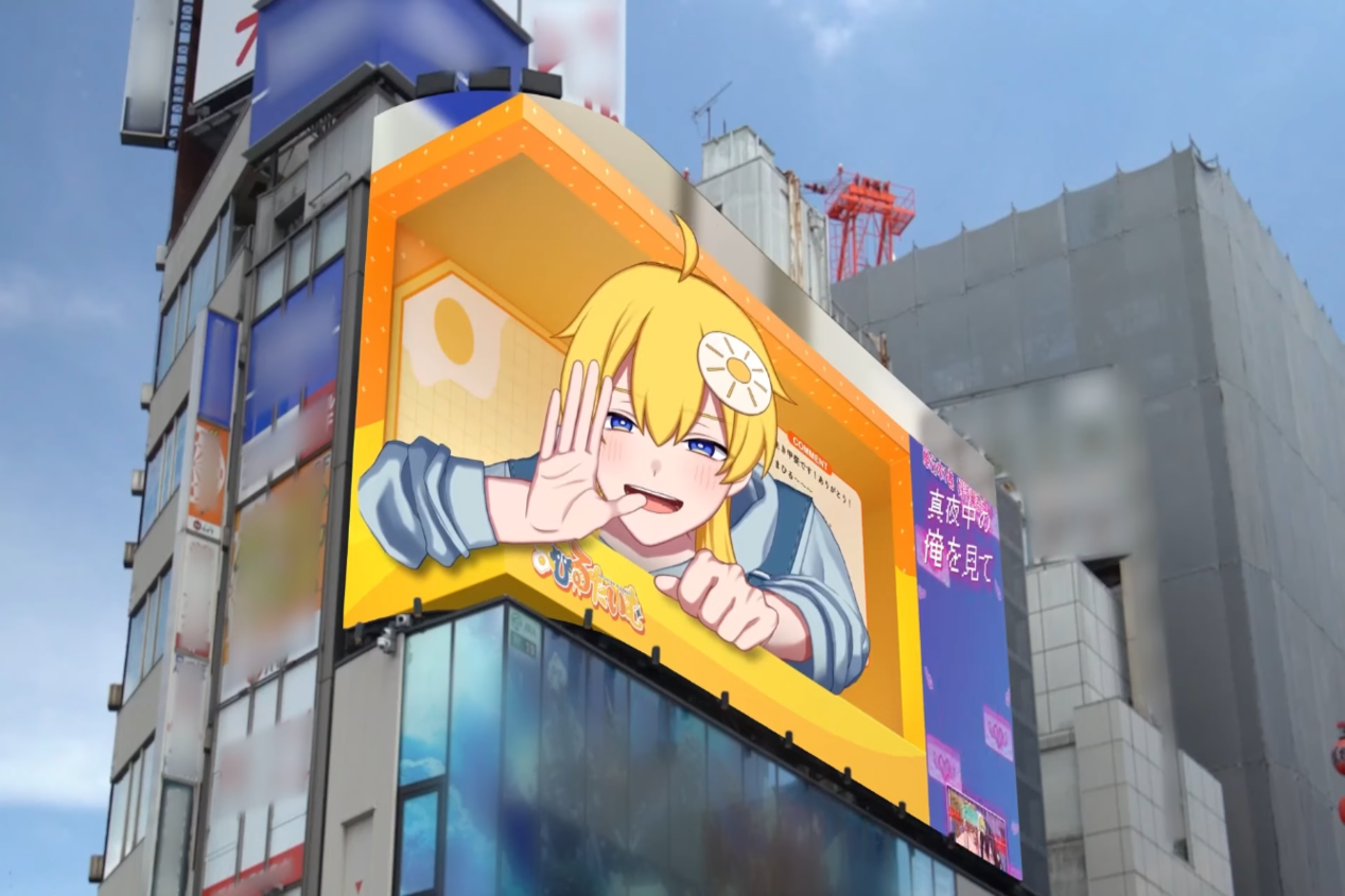 from RED連載中の『真夜中の俺を見て』クロス新宿ビジョン広告を制作しました。漫画原作で3Dビジョン広告に主人公が登場するシーンをLive2Dで再現しています。