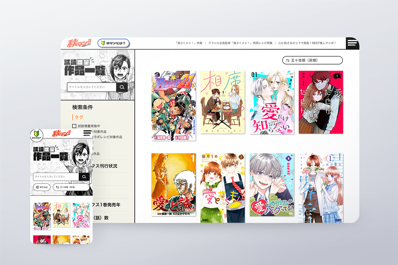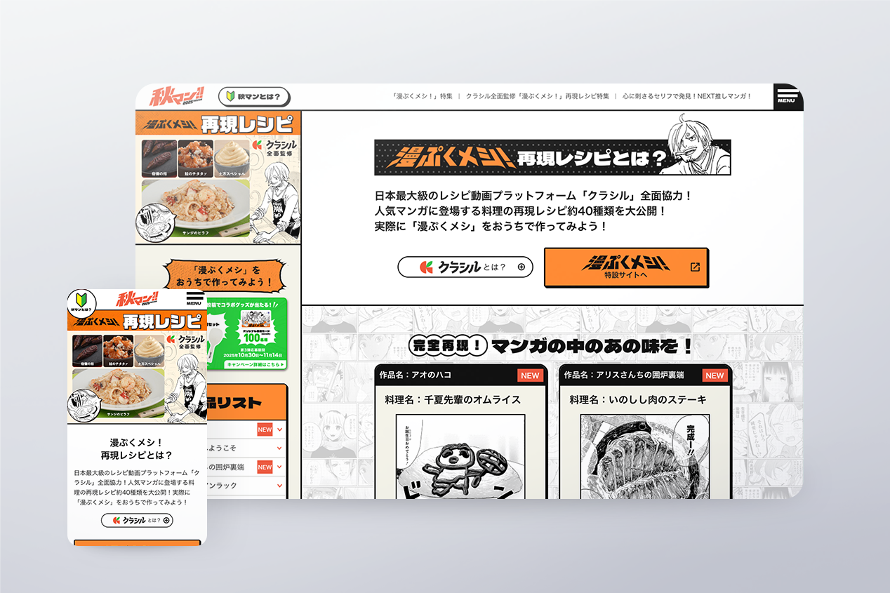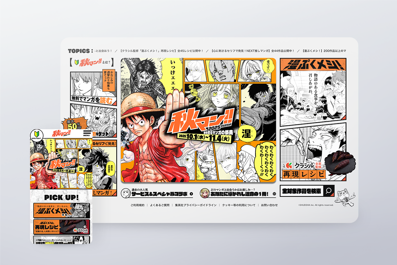 集英社作品のデジタルコミックを無料で試し読みできる、『秋マン!! 2025』特設Webサイトのデザイン〜コーディングを担当しました。